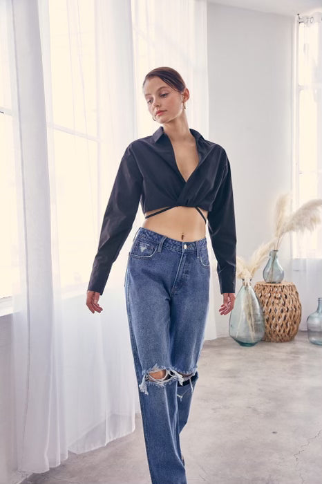 Waist Tie Cropped Shirt